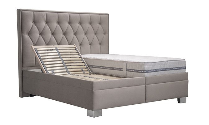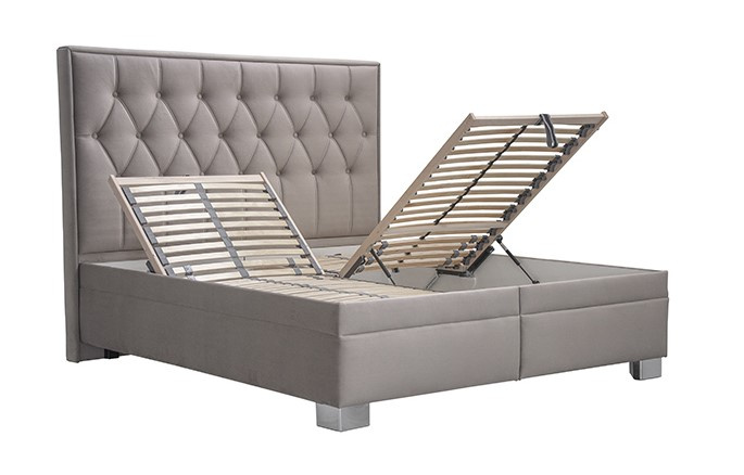 Dvou postel má odvětrávaný úložný prostor s přístupem od nohou, který se otevírá za pomoci plynových pístů.