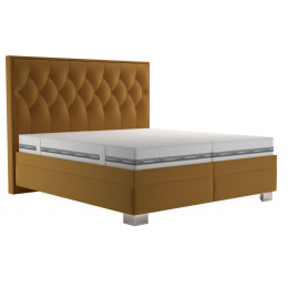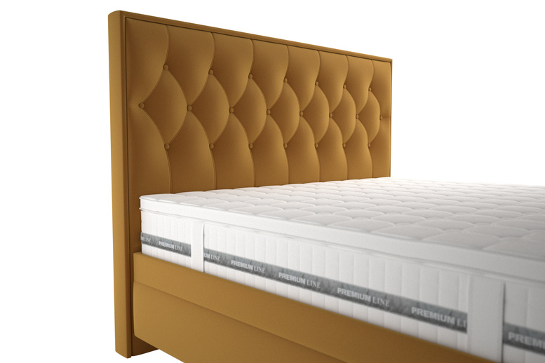 Luxusní dvoulůžko KERSTIN s vynikajícími ortopedickými vlastnostmi a mimořádnou výškou lehací plochy s vysokým prošívaným čelem. Základem postele je kvalitní 28 lamelový rošt s mechanickým polohováním hlavy s nastavením tuhosti lamel a s popruhem proti přetížení, luxusní sedmi zónovou matrace NANNA a velký výběr potahových látek.