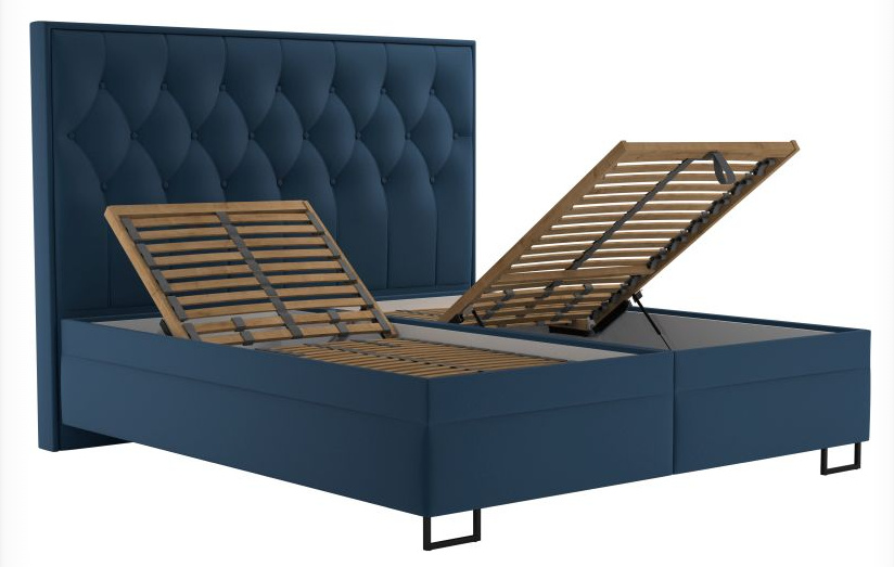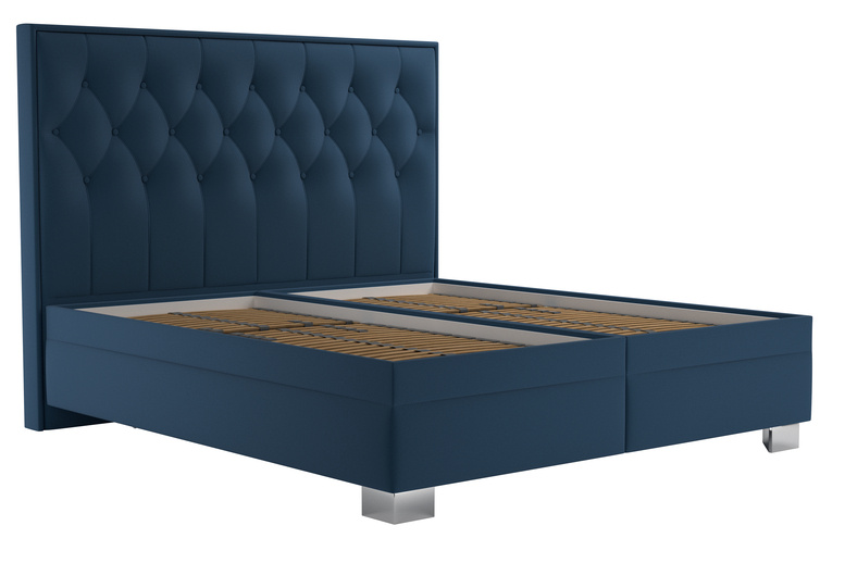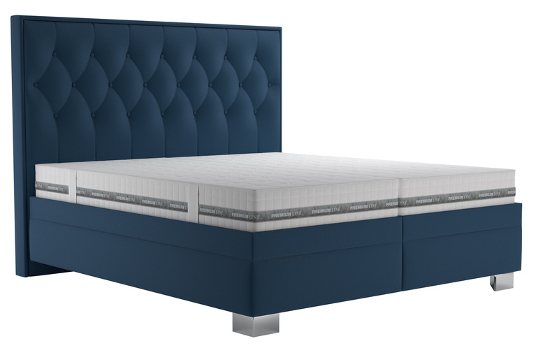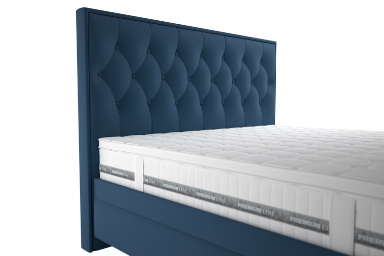 Luxusní dvoulůžko KERSTIN s vynikajícími ortopedickými vlastnostmi a mimořádnou výškou lehací plochy s vysokým prošívaným čelem. V akční nabídce je postel Kerstin v potahové látce RIVIERA 81 - modrá.