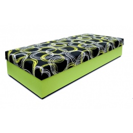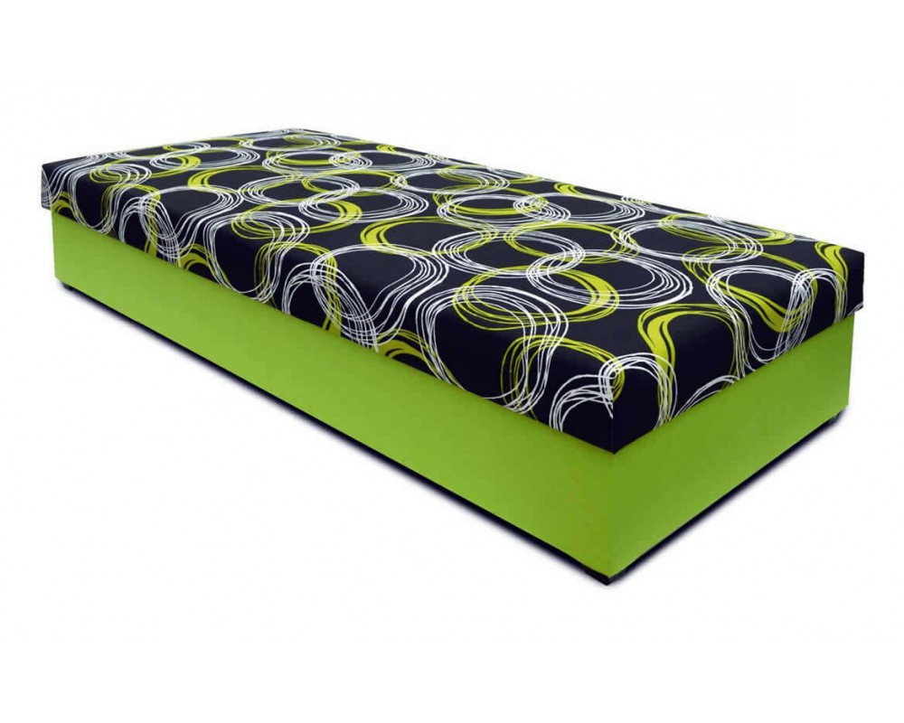 Válenda KLASIK 90 cm nebo 80cm široká s polyuretanovou nebo pružinovou matrací na pevné desce. Postel má velký úložný prostor v bílém laminu s odvětrávacími otvory přístupný z boku. Lehací plocha postele 90 x 200 cm a 80 x 200 cm.