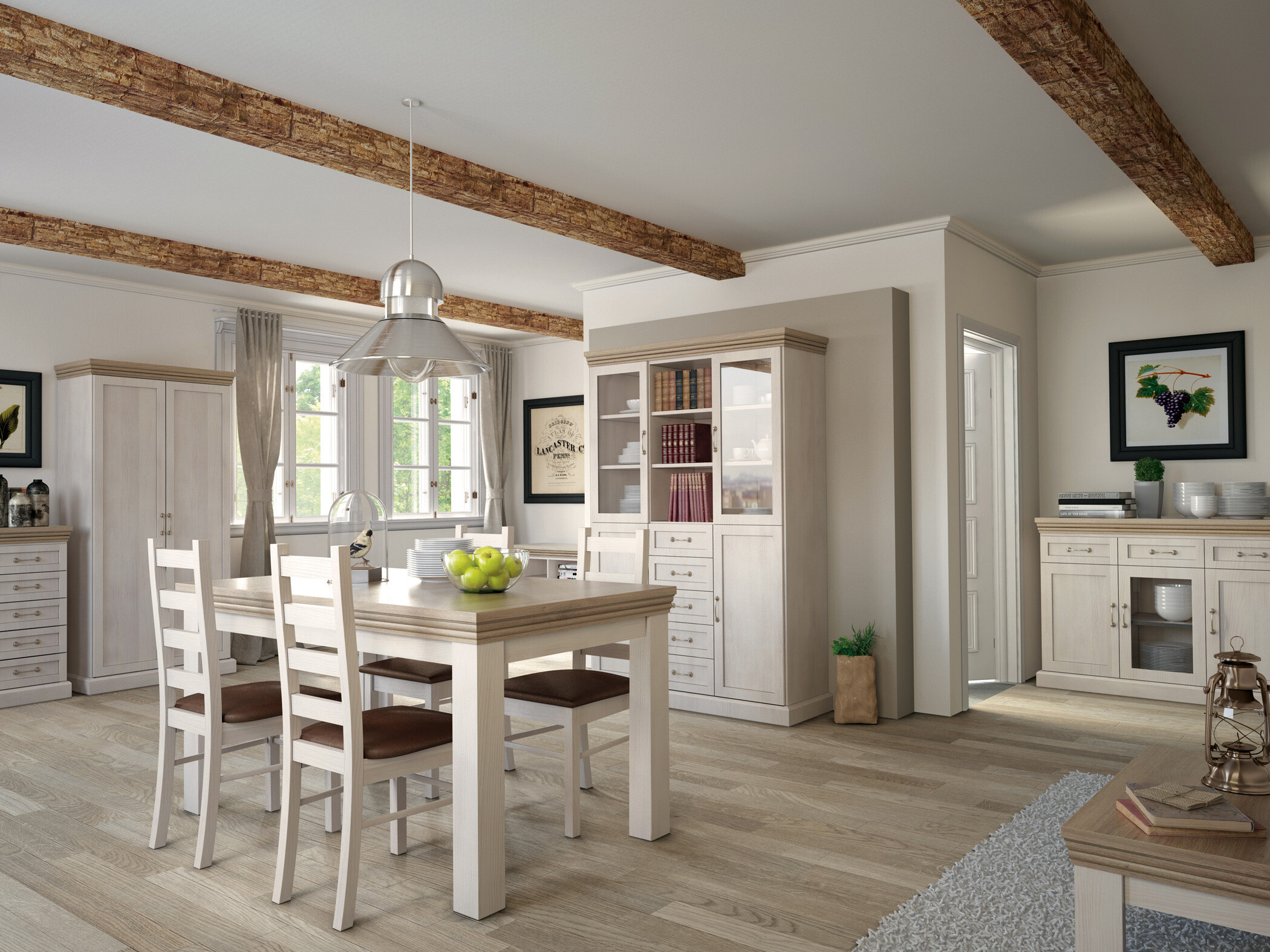 Anglický styl Vašeho domova? To je systémový nábytek ROYAL vyroben v barevné kombinaci Nordic borovice a dubu dziki. Nábytek ze systému ROYAL je vyvinutý k dokreslení útulného a stylového interiéru v anglickém stylu. Sektor ROYAL se skládá z 21 prvků, ze kterých si můžete vytvořit jedinečný vzhled jídelny nebo obývacího pokoje. Nábytek ROYAL je vyrobena z kvalitní MDF.