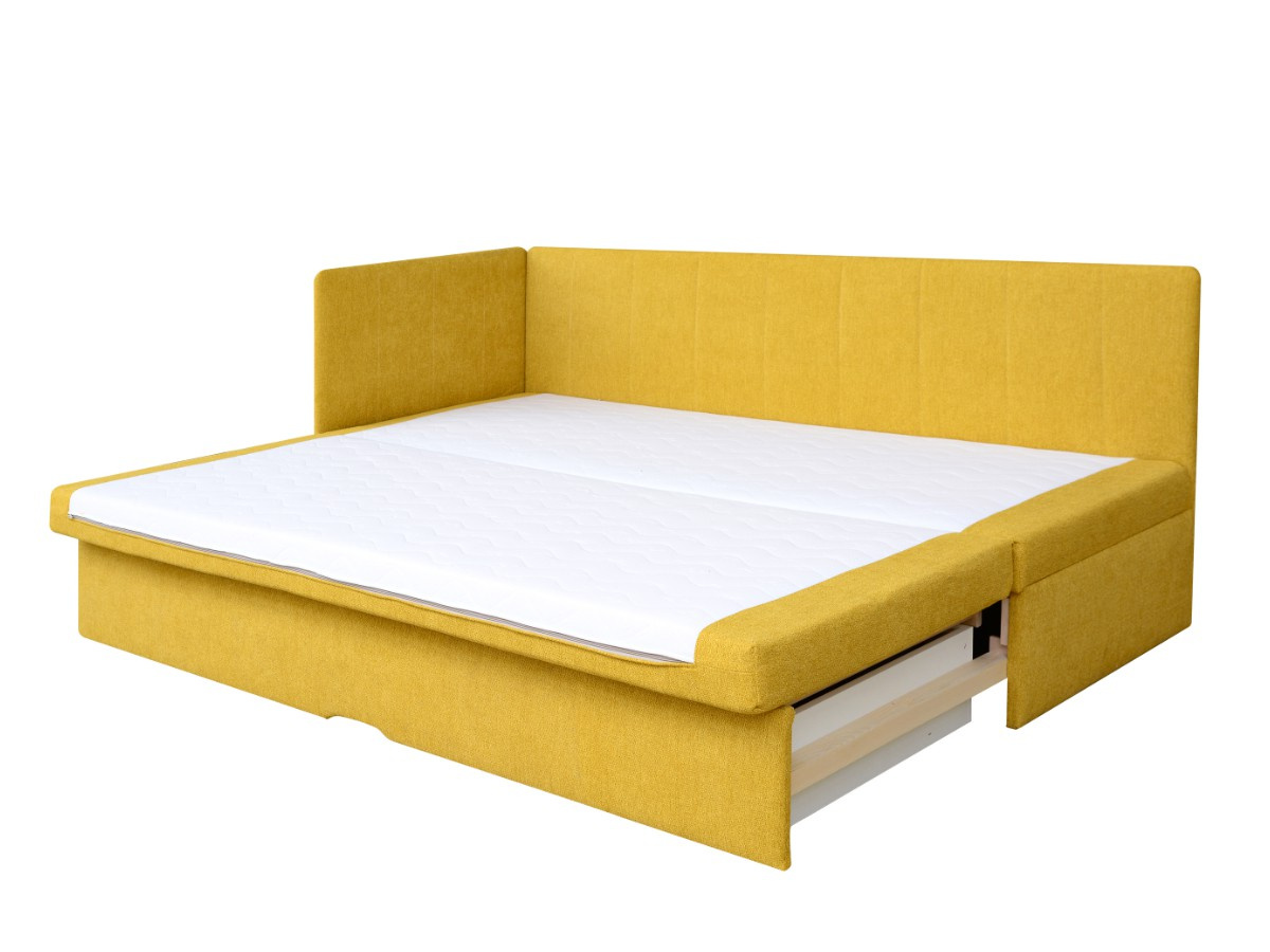 PAMELA je rohová postel s čely. Postel PAMELA je univerzální. Čelo si zvolíte při montáži vlevo/vpravo. Postel s čely PAMELA lze rozložit až na rozměr 157 x 195 cm. Matrace je z kvalitní vysoko elastická PUR pěny. Rošt je lamelový. Výška spací plochy je 38 cm, výška sedu je 50 cm, hloubka sedu 78 cm. Postel je čalouněná v hořčicové látce. Nechybí ani úložný prostor vhodný pro uschování denních dek a lůžkovin.