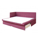 PAMELA je rohová postel s čely. Postel PAMELA je univerzální. Čelo si zvolíte při montáži vlevo/vpravo. Postel s čely PAMELA lze rozložit až na rozměr 157 x 195 cm. Matrace je z kvalitní vysoko elastická PUR pěny. Rošt je lamelový. Výška spací plochy je 38 cm, výška sedu je 50 cm, hloubka sedu 78 cm. Postel je čalouněná ve vínové látce. Nechybí ani úložný prostor vhodný pro uschování denních dek a lůžkovin.