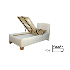 Postel QUATRO je z řady Top Exclusive. Tato řada postelí se vyznačuje osobitým vzhledem a pečlivým zpracováním do toho nejmenšího detailu. Podstatou je, že si můžete sami vybrat rošt, matraci a denní deku, které lze po několikaletém používání vyměnit, což představuje ekonomický, komfortní a hygienický přístup užívání postelí. Tato válenda má volně loženou matraci, má lehací plochu 90 × 200 cm nebo 80 x 200 cm. Maximálně pohodlná a praktická postel s výškou lehací plochy podle zvolené matrace a typu nožek 52/57/58/63 cm. Můžete zvolit rošt mechanicky polohovatelný, přístup do úložného prostoru od nohou postele, rošt určený pro boční přístup k úložnému prostoru. Tyto dva typy mají pístový zvedací systém (umožní snadný přístup k úložnému prostoru). Nastavení tuhosti lamel - 28 + 5 ks jakostních lamel + zpevňující popruh, výkyvná zdvojená pouzdra lamel. Max. zatížení 130kg.