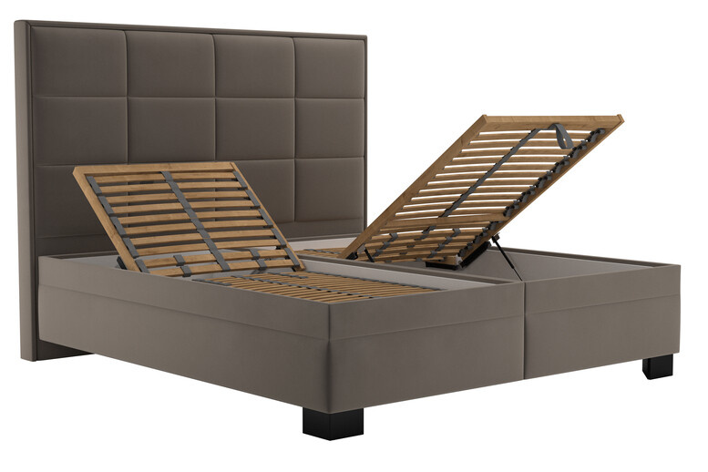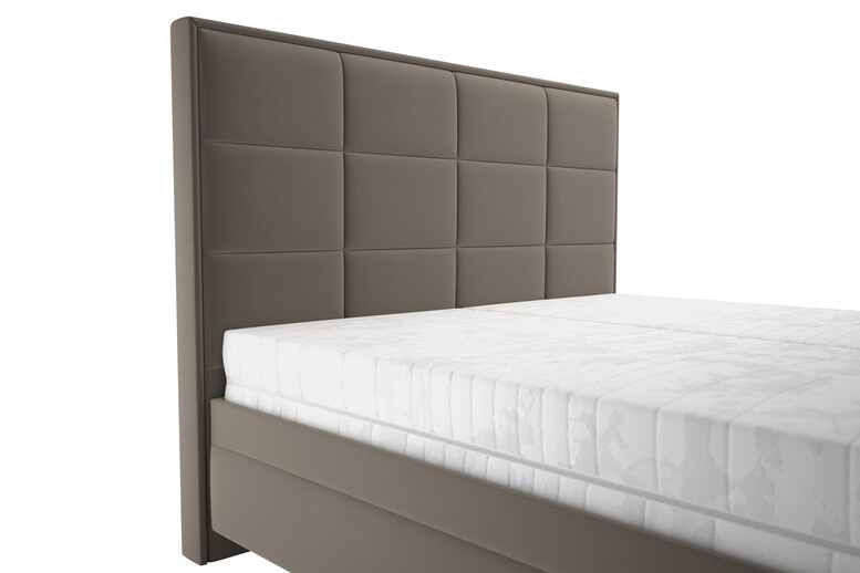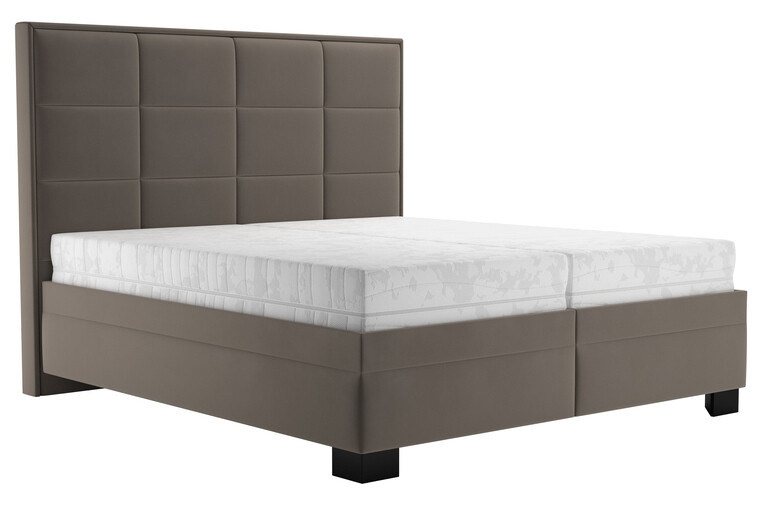 Luxusní dvoulůžko SABRINA s vynikajícími ortopedickými vlastnostmi s mimořádnou výškou lehací plochy s vysokým prošívaným čelem. V akční nabídce je postel SABRINA v potahové látce TIFFANI 29 taupe