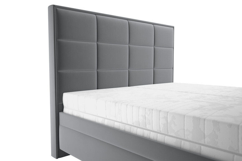 Základem postele je kvalitní 28 lamelový rošt s mechanickým polohováním hlavy s nastavením tuhosti lamel a s popruhem proti přetížení. Možnost výběru varianty bez matrace nebo s kvalitní sedmi zónovou matraci IVANA de luxe.