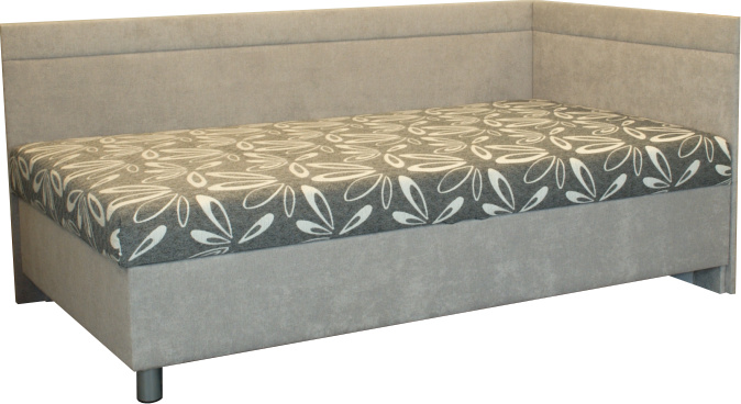 Moderní designová postel s čely do rohu - SÁRA 110. S pevným lamelovým roštem, PUR matrací, velkým úložným prostorem v bílém laminu s odvětrávacími otvory. Přístup do úložného prostoru je z boku postele. Lehací plocha postele je 110 x 200 cm. Možnost volby levého a pravého provedení rohu. Matrace zajišťuje dokonalý odpočinek a dobrou kvalitu spánku.