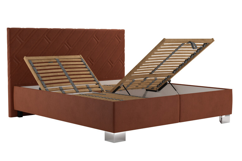 Základem postele je kvalitní polohovací lamelový rošt s přístupen do úložného prostoru od nohou, s nastavením tuhosti lamel a s popruhem proti přetížení. Objednat si můžete postel bez matrací nebo si můžete vybrat z kvalitních matrací fy BLANÁŘ nebo z naší nabídky kvalitních zdravotních matrací ZDE.