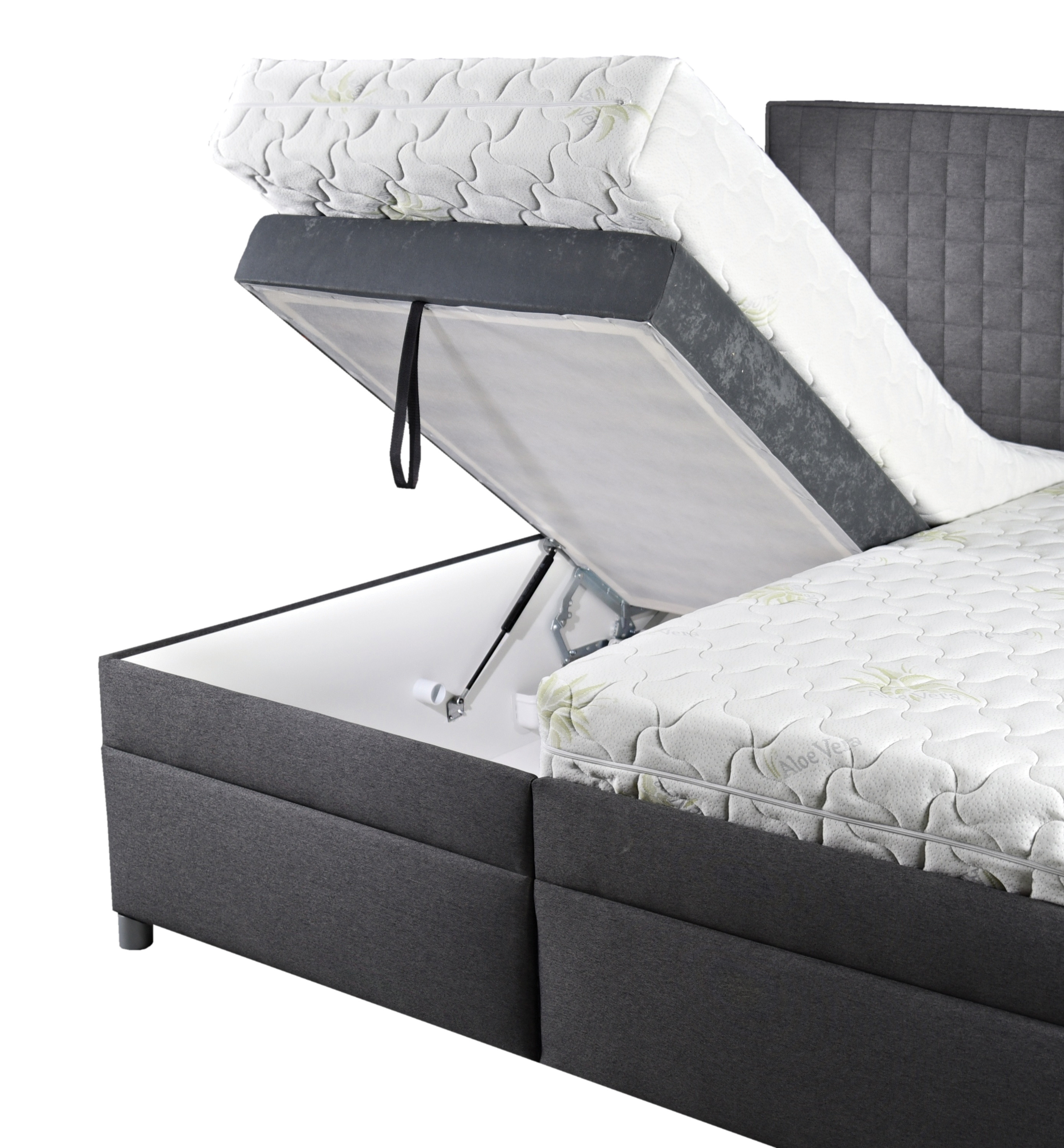 Postel VENETO s krátkým čelem je z nové modelové řady PREMIUM BOXSPRING. Tato řada kontinentálních postelí nabízí maximální komfort a relaxaci. Tyto postele jsou vysoké a mají důmyslný systém odvětrávání. Postel si můžete vybrat s úložným prostorem přístupným od nohou s možností polohování a z boku postele v případě nepolohovacích roštů. Vzdušné pružinové jádro, textilie, pěna a duté vlákno jsou pevně začalouněné k lamelovému masivnímu rámu. Úložný prostor dostatečné velikosti s odvětráváním zajišťuje přívod vzduchu k matracím. Vynikající doplněk pro každý typ matrace je TOPPER. Je vhodný k ochraně matrace a komfortu spánku. Můžete si sami vybrat rošt a matraci. Toto jednolůžko má lehací plochu 80 × 200 cm, 90 x 200 cm nebo 100x200 cm Maximálně pohodlná a praktická postel s komfortní výškou lehací plochy podle zvolené matrace 59-70 cm. Pro postel si můžete zvolit rošt mechanicky polohovatelný, přístup do úložného prostoru od nohou postele. Nebo rošt nepolohovatelný, určený pro boční přístup k úložnému prostoru. Oba typy mají plynové písty ( umožní snadný přístup k úložnému prostoru ).