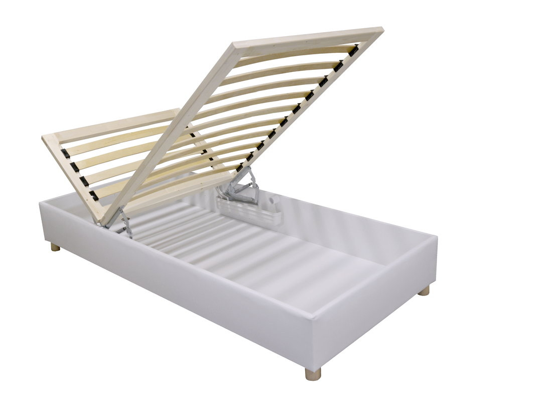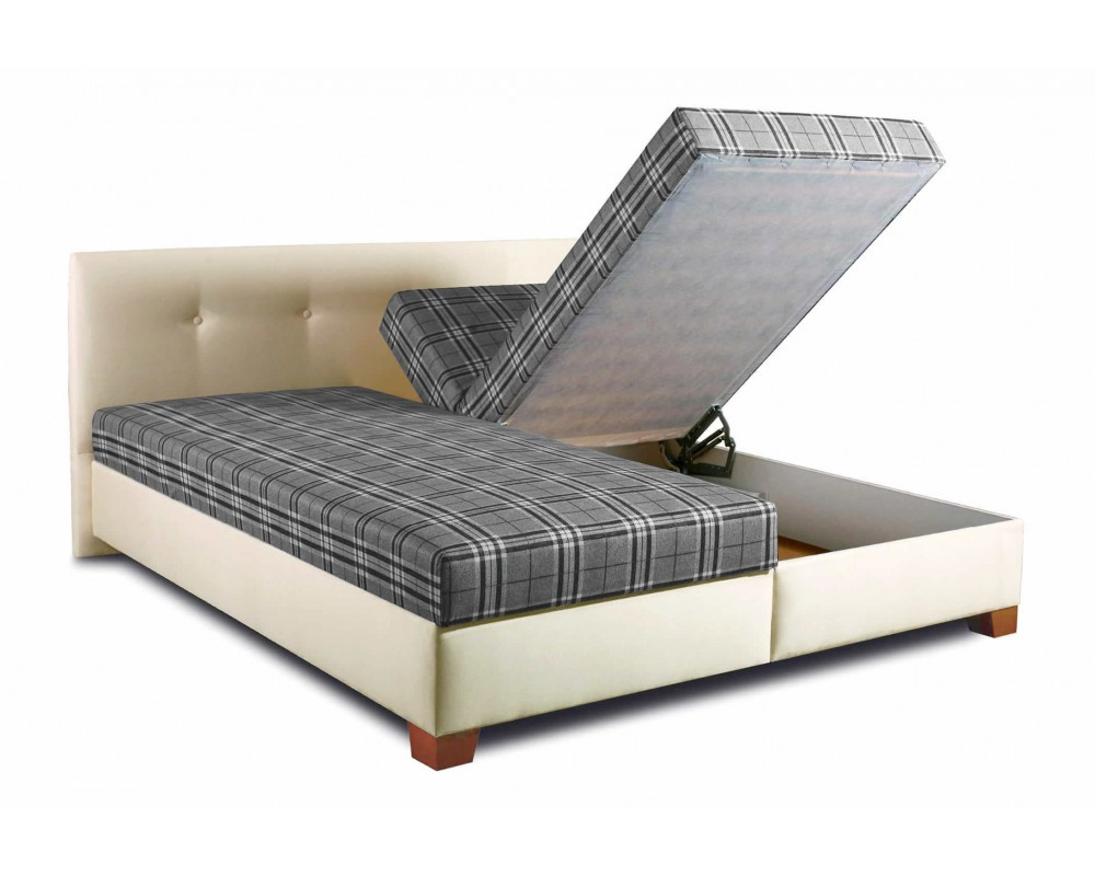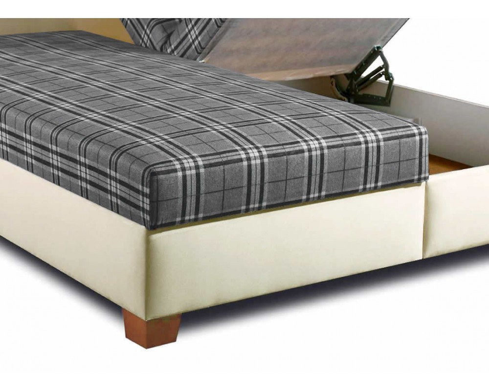 Postel VENICE s matrací z PUR pěny nebo pružinovou matrací loženou na pevné desce a velkým úložným prostorem v bílém laminu s odvětrávacími otvory. Přístup do úložného prostoru je boku postele. Možnost volby roštu. Za příplatek lamelový rošt pevný s přístupem z boku postele nebo za příplatek možnost volby polohovacího lamelového roštu s přístupem do úložného prostoru od nohou. Lehací plocha postele 180 x 200 cm nebo 160x200cm. Možnost prošití povrchu postele za příplatek. Matrace zajišťuje dokonalý odpočinek a dobrou kvalitu spánku. Komfortní výška lehací plochy 44/50 cm dle volby nožek.