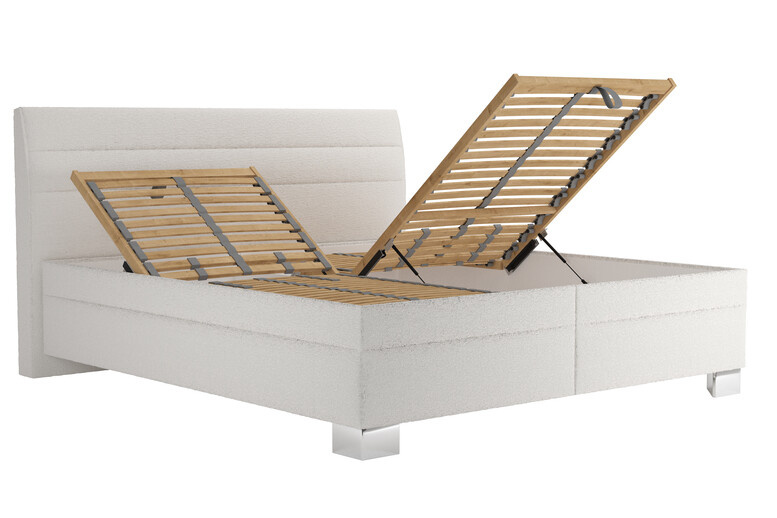 Základem postele je kvalitní polohovací lamelový rošt s přístupen do úložného prostoru od nohou, s nastavením tuhosti lamel a s popruhem proti přetížení. Objednat si můžete postel s matrací ASTERIA.