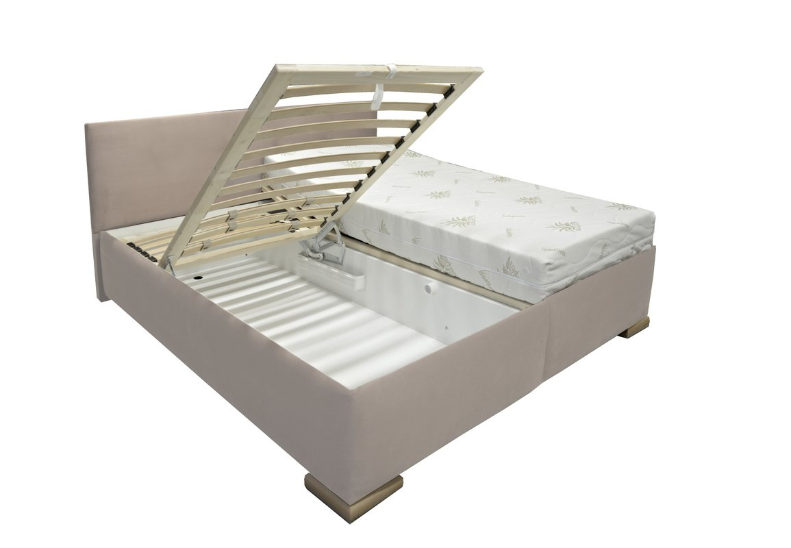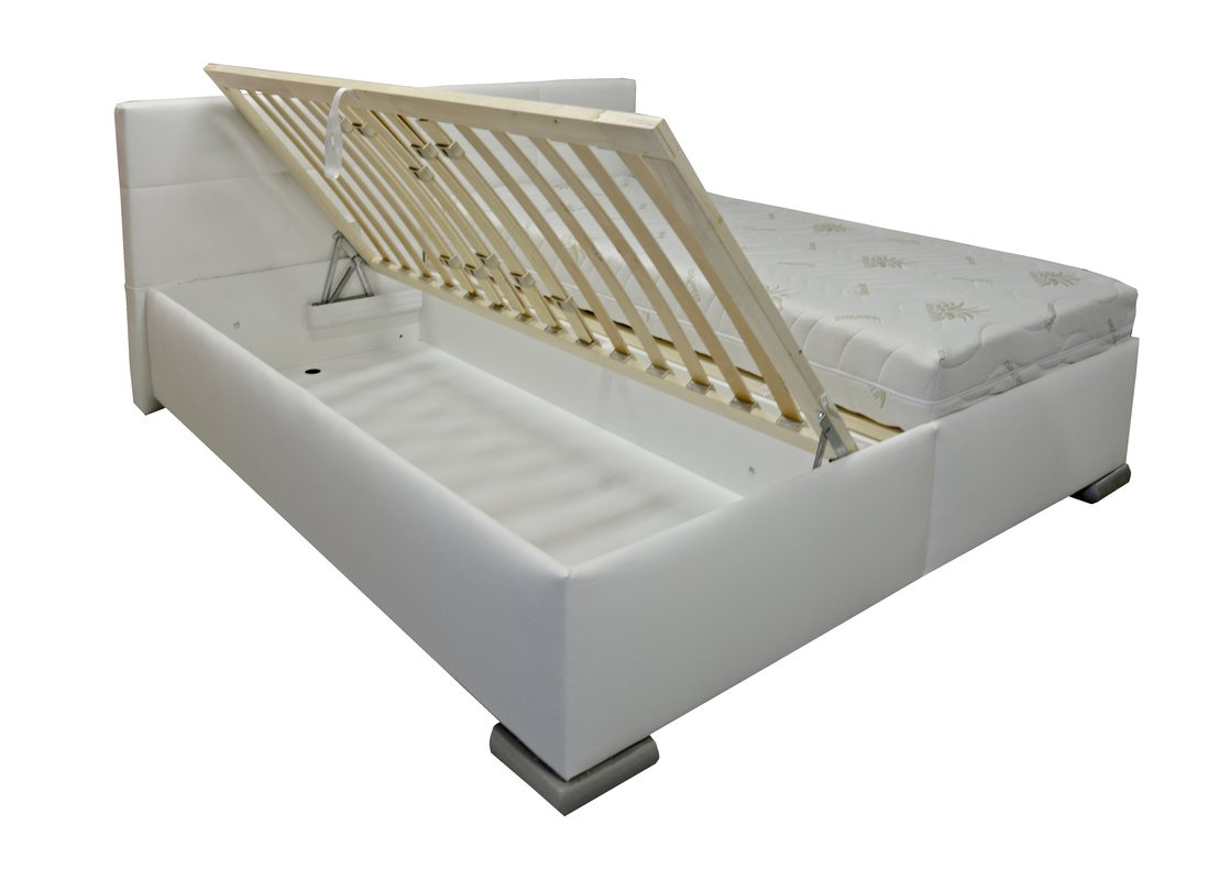 Postel VITAT je z modelové řady LUXUS. Tyto postele jsou jedinečným produktem, který za příznivou cenu nabízí rozumnou vyváženost mezi designem a komfortem. Pohodlná a praktická postel s velkým úložným prostorem (hloubka úložného prostoru 30 cm). Můžete zvolit rošt mechanicky polohovatelný, přístup do úložného prostoru od nohou postele, rošt určený pro boční přístup k úložnému prostoru. Tyto dva typy mají pístový zvedací systém (umožní snadný přístup k úložnému prostoru). Nastavení tuhosti lamel - 28 + 5 ks jakostních lamel + zpevňující popruh, výkyvná zdvojená pouzdra lamel. Max. zatížení 130kg. Postel je maximálně pohodlná a praktická s komfortní výškou lehací plochy dle volby matrace od 52/57/58/63 cm. Toto dvoulůžko má volně ložené matrace, má lehací plochu 180 × 200 cm nebo 160 x 200 cm.
