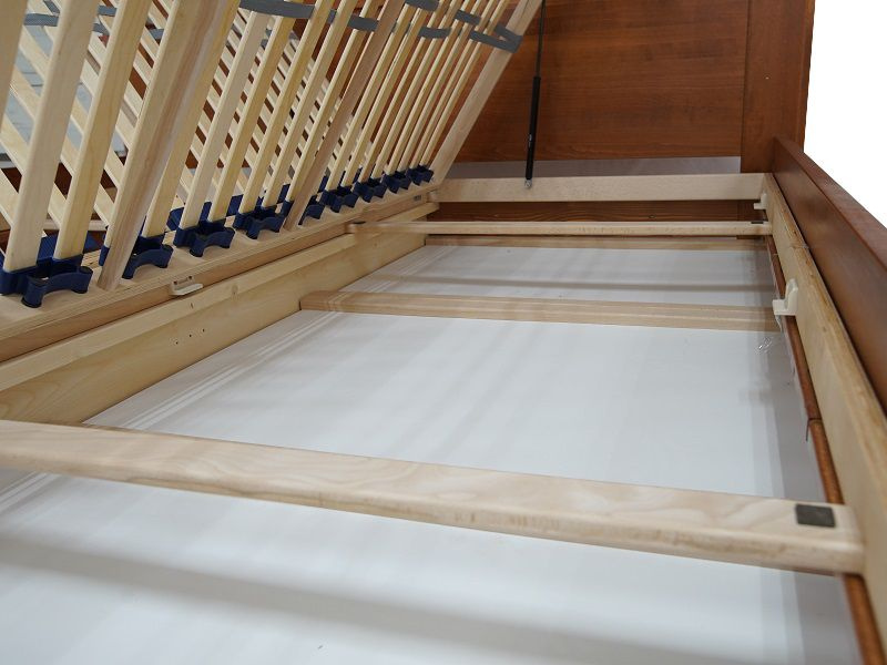 Postel je dodávána v demontu s úložným prostorem a lamelovými rošty, bez dekorací a matrací