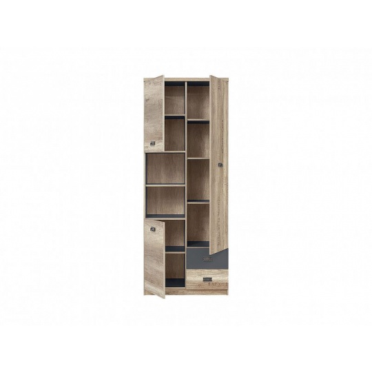 Regál REG3D2S - trojdvířkový s šuplíky a otevřenou odkládací nikou, police