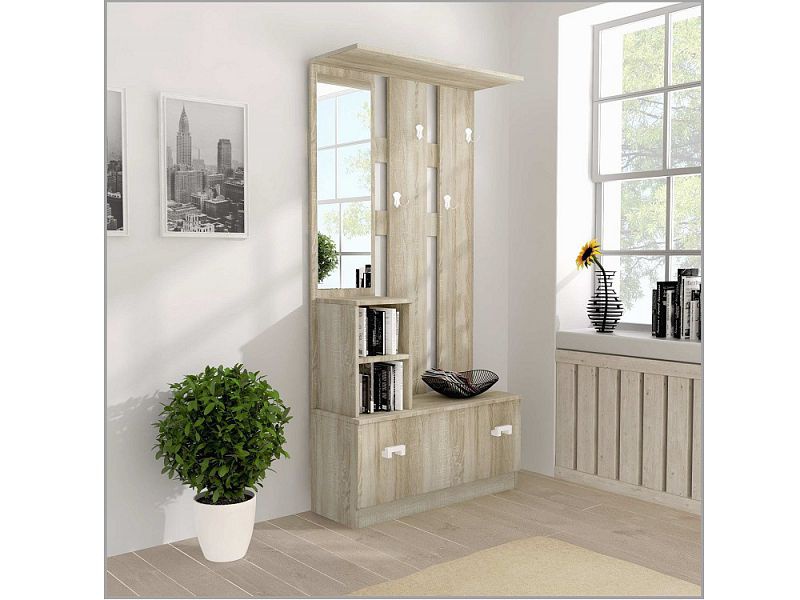 DEXTER je malá, klasická odkládací stěna, která se bude krásně vyjímat v každé předsíni. Předsíňová stěna DEXTER je vyrobena z lamina v atraktivním barevném provedení dub sonoma. Zrcadlo opticky zvětší prostor, věšáky k zavěšení kabátů a bund, praktický výklopný botník a horní police k odložení čepic a šálů - malá předsíňová stěna se vším co je v předsíni potřeba.
