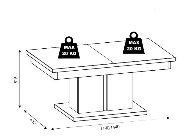 Rozměry: š. 114 - 144 cm / v. 51,5 cm / hl. 68 cm