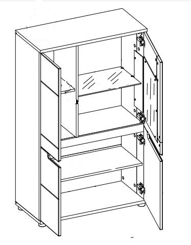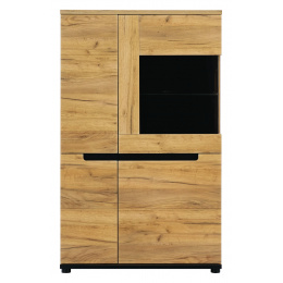 Vitrína PR5 ze systému PRISCO - dvou dvířková částečně prosklená, s policemi. V prosklené části je police skleněná a můžete ji doplnit LED osvětlením.