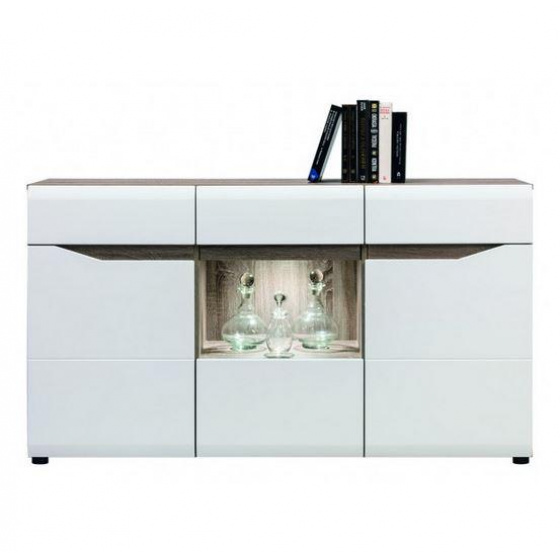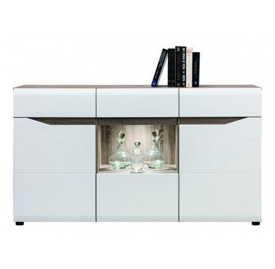 LIONEL je moderní elegantní systémový nábytek v atraktivním barevné kombinaci dub sonoma truflova / bílý lesk. Tento nábytek Vás zaujme, na první pohled, svými hladkými tvary a originálně řešenými úchyty dvířek a šuplíků, které nenarušují jejich plynulou línii. Sektorový nábytek LIONEL můžete využít při zařizování obývacího pokoje, jídelny, ložnice i studenský pokoj. Korpusy skříněk jsou vyrobeny z kvalitní dřevotřísky v barvě dub sonoma truflový. Dvířka jsou z foliované MDF v bílé barvě ve vysokém lesku. Komfort při používání dvířek a šuplíků zajišťují tlumiče pro tiché dovírání.