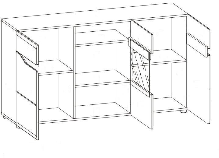 Komoda LI 4 - tří dvířková s policemi, uprostřed prosklená část dvířek, možno doplnit LED osvětlením