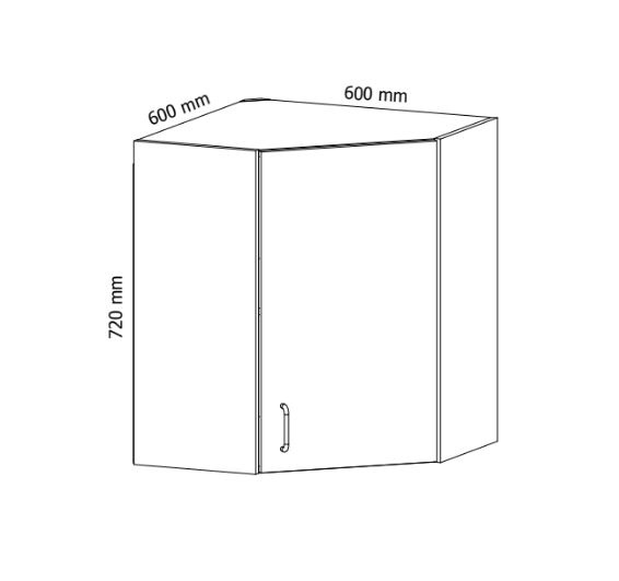 Horní rohová skříňka kuchyně PROWANSJA G60N - jedno dvířková rohová horní skříňka s plnými dvířky a jednou policí