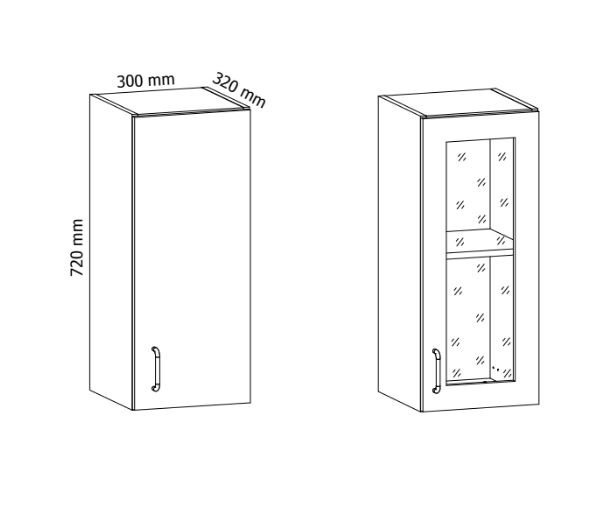 Horní skříňka kuchyně PROWANSJA G30S - jedno dvířková prosklená horní skříňka s jednou policí