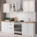 Elegantní kolekce rustikálního nábytku inspirovaná francouzskou Provence. Vybavte sektorem PROWANSJA obývací pokoj, jídelnu nebo kuchyni. Dostanete do bytu svěží závan jihu Francie. Dvířka a čelní plochy kuchyně PROWANSJA jsou vyrobeny z MDF v klasickém barevném provedení Sosna Andersen, korpus je z kvalitního lamina v bílé barvě. Tato jedinečná kombinace dodá interiéru hravost a svěžest.  Dvířka mají kvalitní nastavitelné závěsy. Šuplíky jsou na kovových pojezdech. Funkci tichého dovírání jsou vybaveny šuplíky i dvířka. Horní skříňky otvíráme pomocí plynových pístů. Nožky v dolních skříňkách jsou výškově stavitelné. Nadčasovým prvkem u kuchyní ze systému PROWANSJA jsou kovové úchyty.