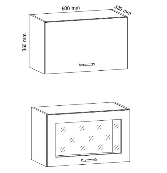 Horní skříňka kuchyně PROWANSJA G60KSN - jedno dvířková, výklopná, prosklená skříňka