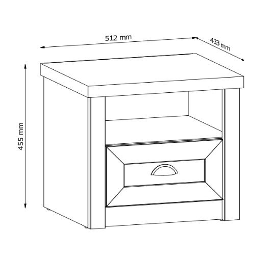 Noční stolek SN ze systému PROWANSJA Sosna Andersen - s šuplíkem a otevřenou odkládací nikou