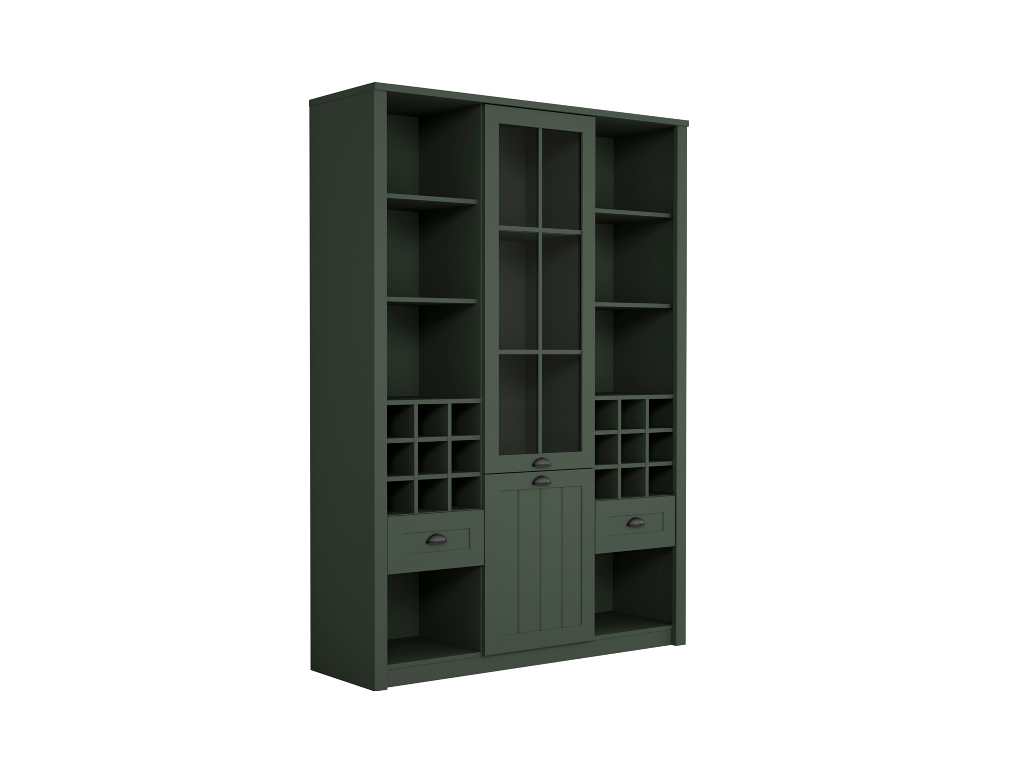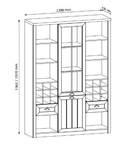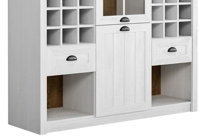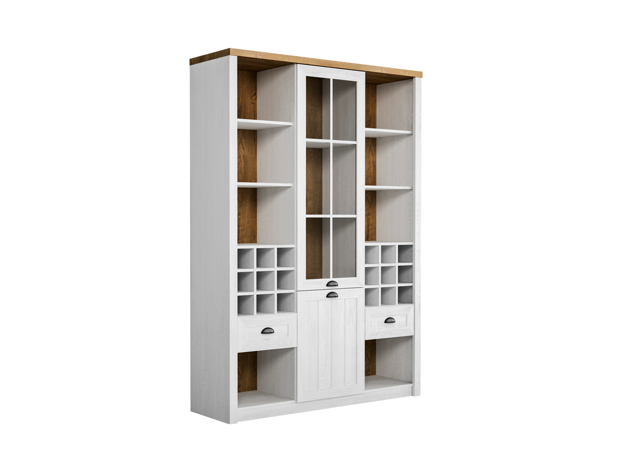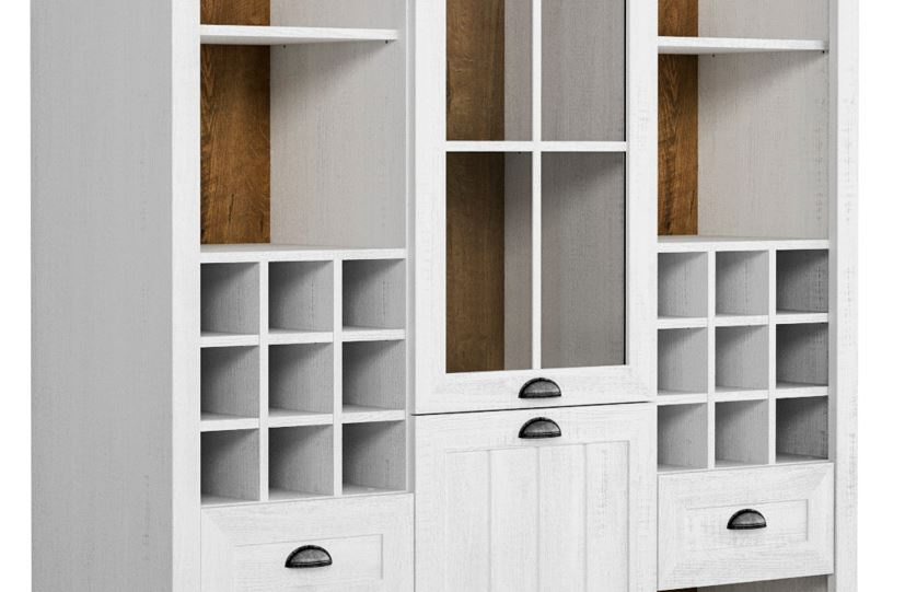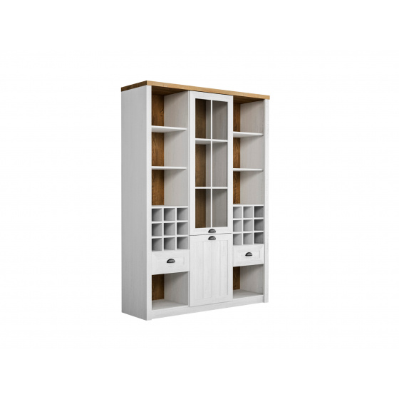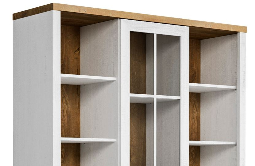 Regál W2D2S ze systému PROWANSJA Sosna Andersen - kombinovaný regál s prosklenými dvířky, policemi a šuplíky