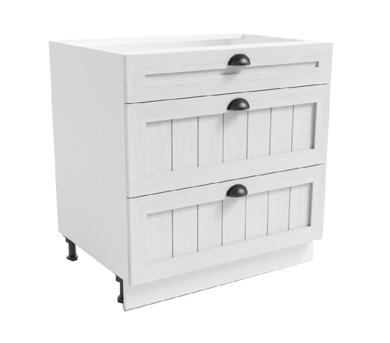 Spodní kuchyňské skříňky se dodávají bez soklu a bez pracovní desky, které si můžete vybrat z naší nabídky.