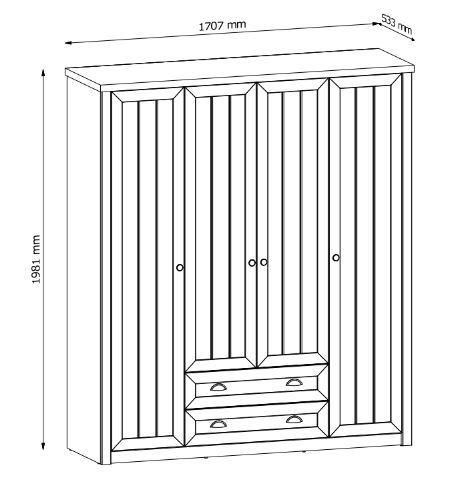 Šatní skříň S4D ze systému PROWANSJA Sosna Andersen - kombinovaná šatní skříň s šatní tyčí, policemi a dvěma šuplíky