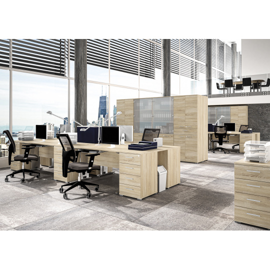Optimal kancelářský nábytek je ideální pro vybavení klasických kancelářských prostorů, kanceláří a konferenčních místností. Skládá se z řady skříněk, knihoven a komod, které slouží k zakládání dokumentů v kanceláři. Široká škála stolů z vysoce kvalitní lamino MDF desky o tloušťce 22 mm a 2 mm a hrany ABS, založené na kovových podkladech, nabízí mnoho variant uspořádání. Další důležitou výhodou je také uzamykatelnost skříňek a kontejnerů.