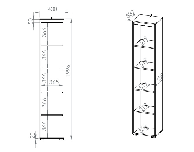 Rozměry: š. 40 cm / v. 200 cm / hl. 34 cm
