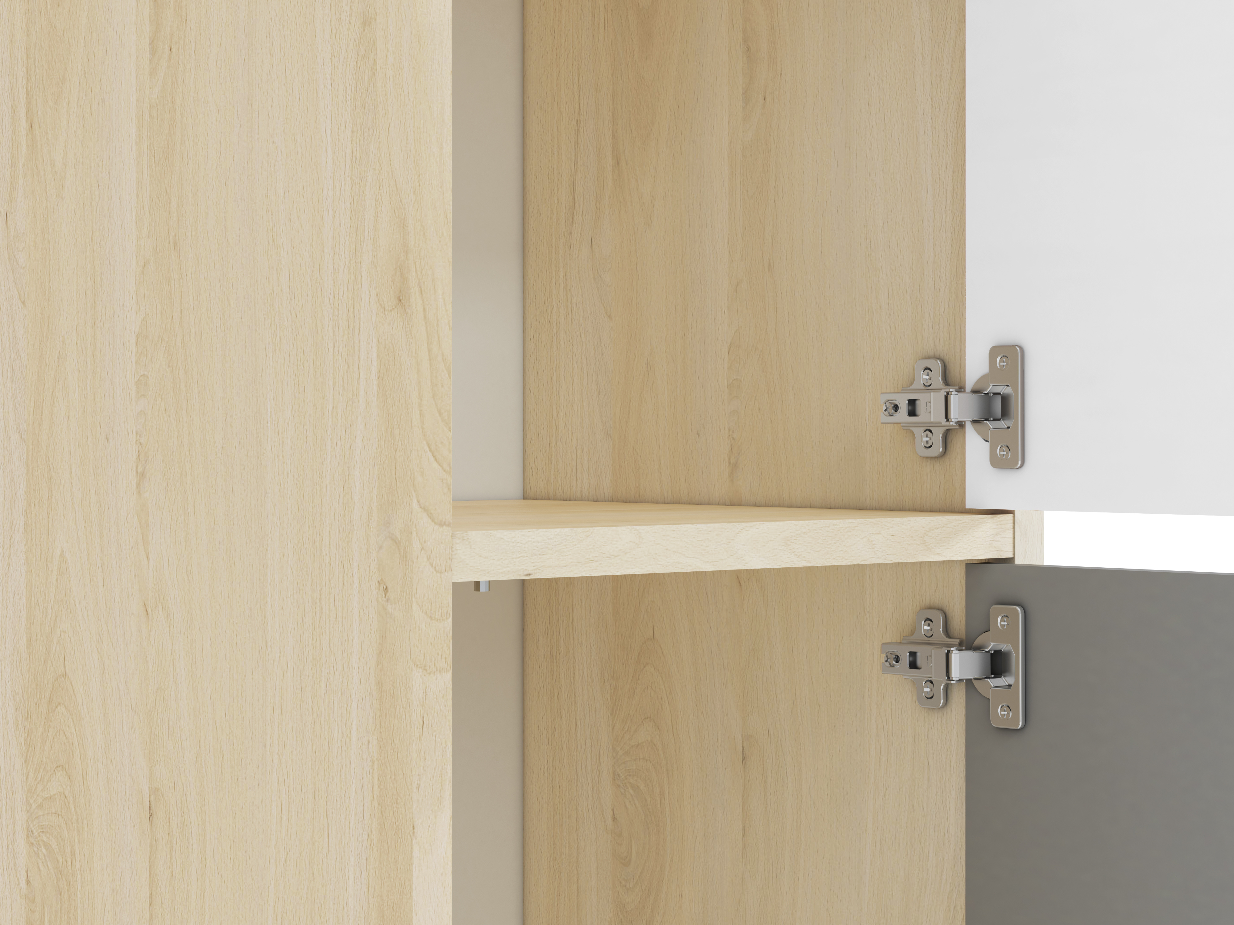 Regál DROP 06 - otevřený se čtyřmi policemi. Můžete doplnit dvířky DROP 06W v bekoru buk fjord, šedá, bílá