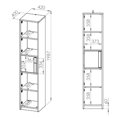 Rozměry: š. 42 cm / v. 199 cm / hl. 40 cm