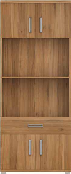 Regál N - 016 je dodáván kompletně vybaveny policemi, uprostřed otevřenv, v horní a spodní části uzavřen dvířky s jedním šuplíkem. Velký výběr barevného provedení, včetně kombinací barev je samozřejmostí. Výběrem těch správných úchytů dovršíte svůj jedinečný design.