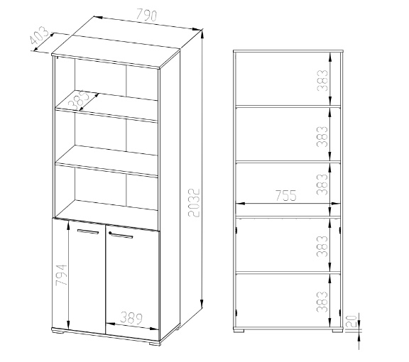 Regál OPTIMAL 04, policový, dvoudvířkový, částečně otevřený