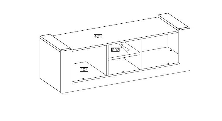 RHODOS televizní stolek 07 - po stranách plná dvířka, uprostřed otevřená odkládací nika s poličkou