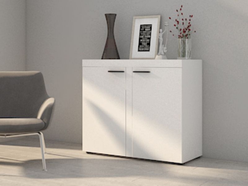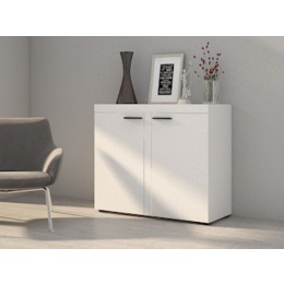 Moderní, komoda ROBIN, v atraktivním barevném provedení bílá. Nábytek je vyroben z vysoce kvalitního lamina odolné proti poškrábaní a vlhkosti. Ke komodě je možno dokoupit  LED osvětlení.