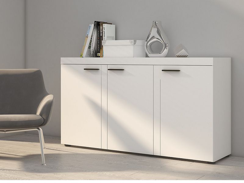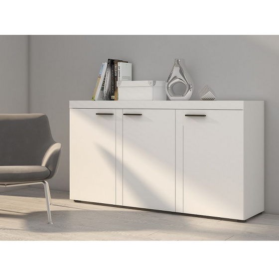 Moderní, komoda ROBIN, v atraktivním barevném bílém provedení. Nábytek je vyroben z vysoce kvalitního lamina odolného proti poškrábaní a vlhkosti v bílé barvě.