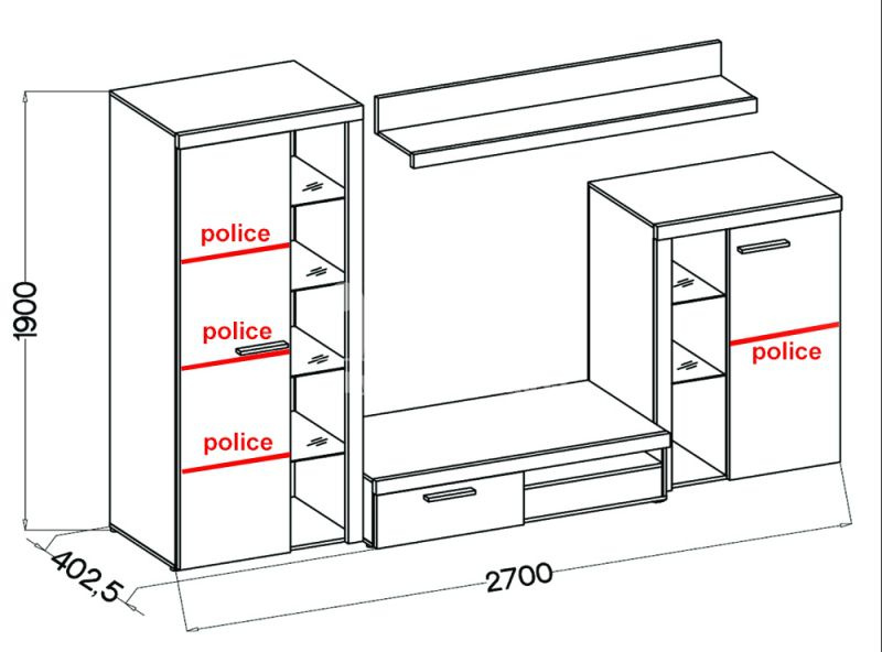 Rozměry: š. 270 cm / v. 190 cm / hl. 40 cm