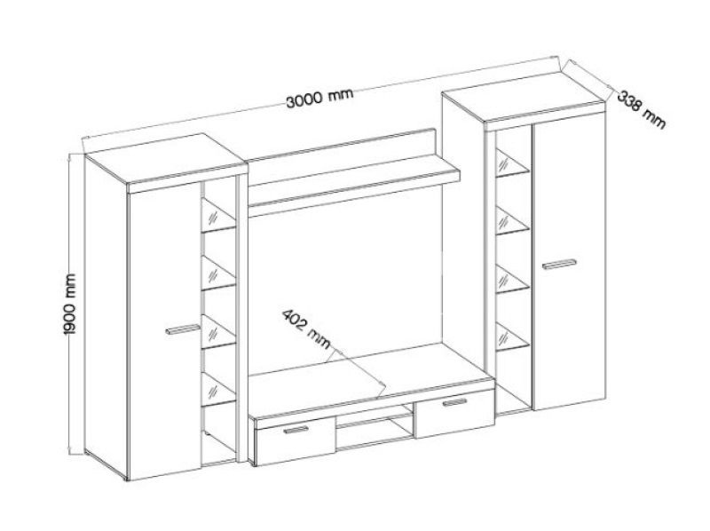 Rozměry: š. 300 cm / v. 190 cm / hl. 40 cm