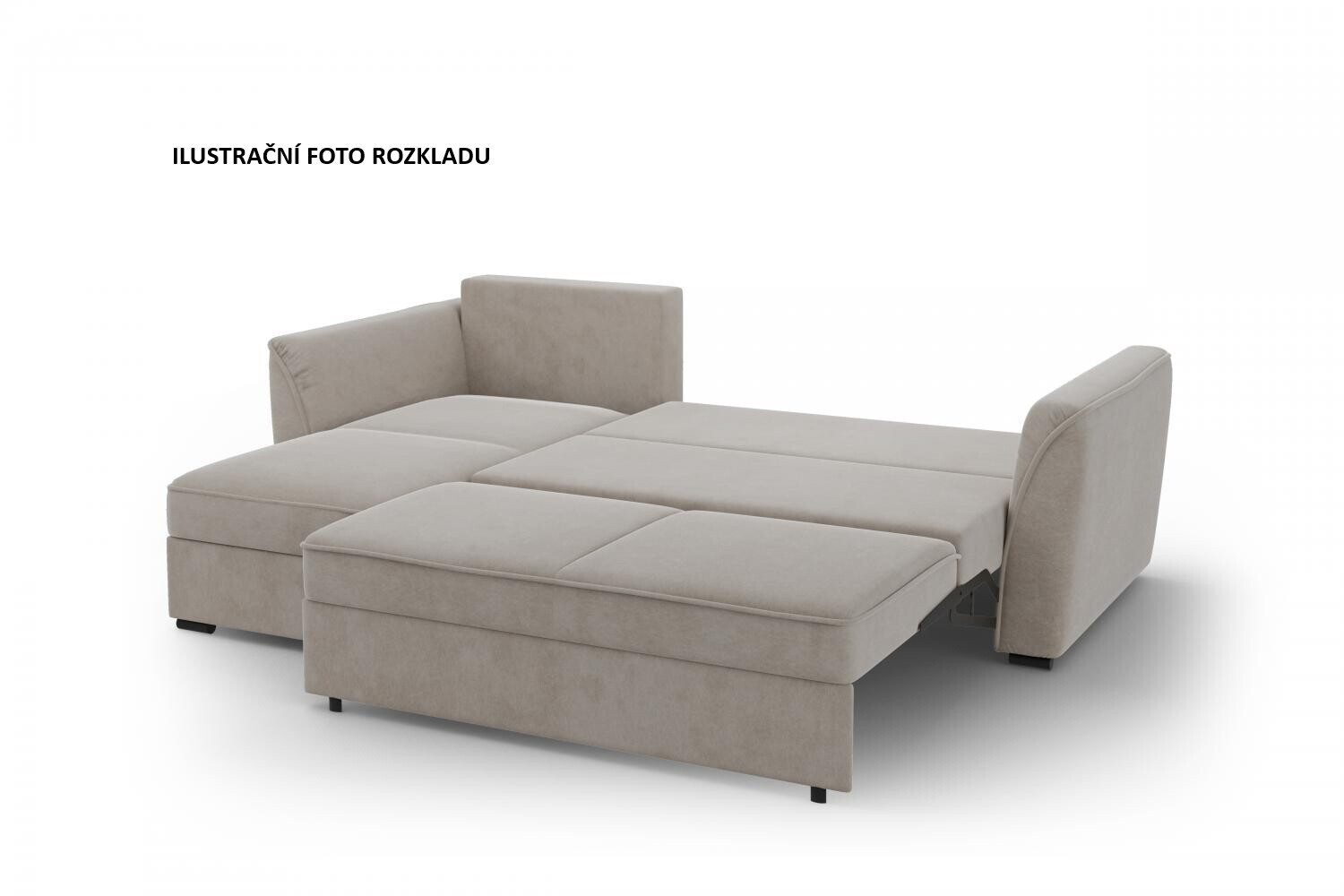 Moderní rohová rozkládací pohovka SEVILA s úložným prostorem pro uložení dek a lůžkovin. Je vybavena jádrem s pružinovými vlnovci a vysoce elastickou pěnou. Moderní mechanismus umožňuje jediným pohybem přeměnit pohovku na pohodlné lůžko a vytvořit tak velkou, rovnou a pohodlnou spací plochu. Pohovka najde své uplatnění ve studentských pokojích i malých bytech, kde zastane funkci sedací soupravy i pohodlného lůžka. Rohovou pohovku si můžete objednat v pravém nebo levém provedení rohu