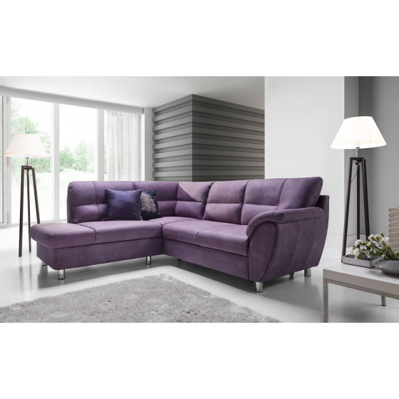 Rohová sedací souprava AMIGO, rozkládací s úložným prostorem a kovovýma nožičkama. Sedací soupravu máte možnost sestavit v pravém nebo levém provedení a doplnit křeslem nebo taburetkou pro své větší pohodlí při odpočinku. Sedací souprava je rozkládací s lůžkem o rozměrech 120 x 175 cm. Sedací čast je vyplněná pružinovými vlnovci a PUR pěnou odolnou proti prosezení.