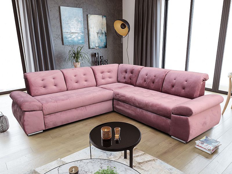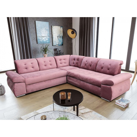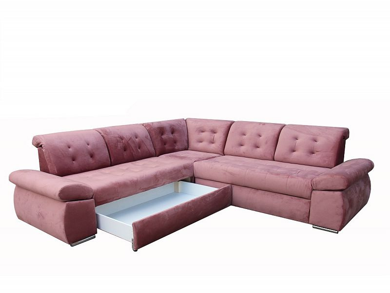 Rohová sedací souprava ANDROS je rozkládací s úložným prostorem. Díky možnosti rozkladu je sedačka ANDROS vhodná pro příležitostné přespání. Velikost spací plochy je 130 x 190 cm. Sedačka je očalouněná látkou s Aqua Clean povrchovou úpravou v barevném provedení světlá bordó - Monolith 63. Výplň sedáků je tvořená PUR pěnou a vlnitou pružinou. Nožky jsou chromované.