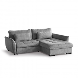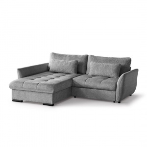 Rohová sedací souprava ANETA. Tato sedačka ve světlém provedení, upoutá pozornost nejednoho zákazníka. Její rohové provedení je levé nebo pravé z pozice sedícího. Barevné provedení sedací soupravy je v šedé barvě látky Bubble 06. Tato látka je v úpravě watter repellent, nevsakuje tekutiny a snadno se čistí. Rozklad je očalouněný totožnou látkou, což dodá na luxusním vzhledu. Pohodlné sezení zabezpečuje komfortní Bonellová pružina. Díky čemuž je zajištěn vysoký komfort při spánku. Rohovka je po rozložení vhodná k dennímu spaní. Rozklad typu Delfin ma velikost spací plochy 163 x 200 cm.
