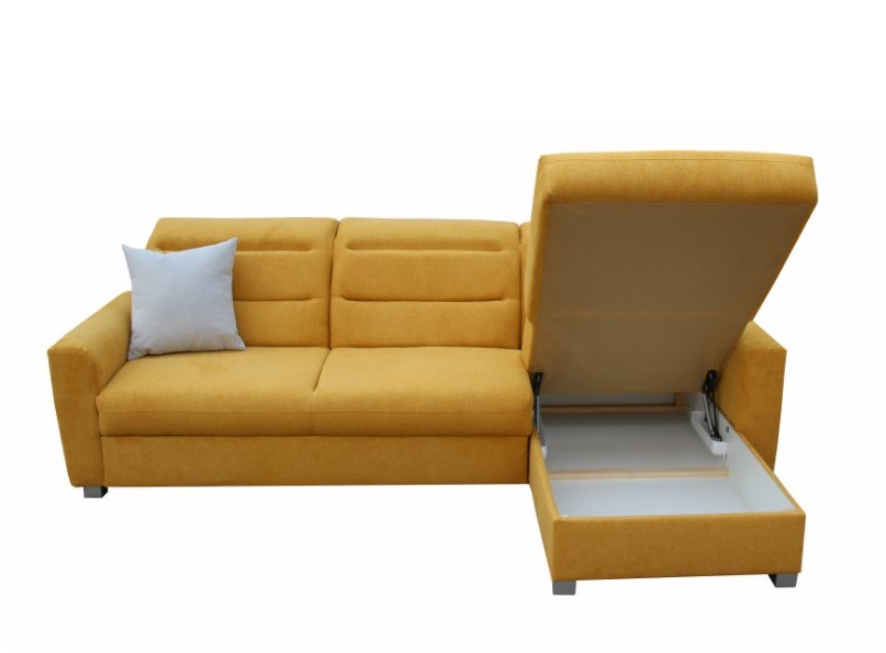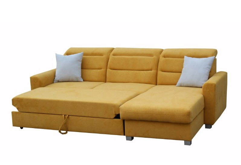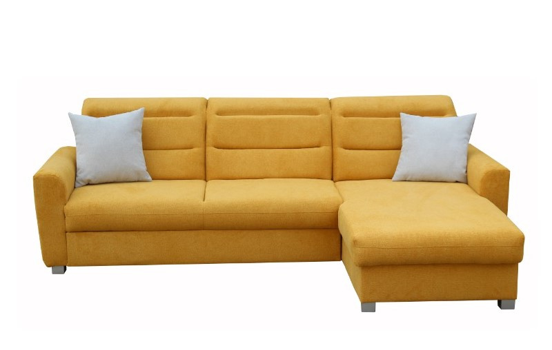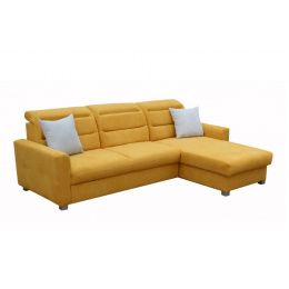 Univerzální rohová sedací souprava ANITA, se stane nedílnou součástí vašeho obývacího pokoje. Její rohové provedení můžete sestavit před první montáží jak v pravé, tak i v levé variantě. Sedací souprava ANITA je potažena látkou Brooklyn v barevném provedení hořčicová, polštáře světle šedé. Látka je silná, hrubá s úpravou Easy Clean - pro snadné čištění, vodoodpudivá. Tato sedací souprava má funkci rozkladu typu Delfin, očalouněno v látce jako sedačka. V rohové části je k dispozici úložný prostor, vhodný pro uschování lůžkovin. Tři polohovací podhlavníky automat. Velikost spací plochy je 132 x 220 cm. Nožičky jsou platové. Pohodlné sezení zajišťuje výplň sedáků PUR pěnou a vlnitou pružinou.
