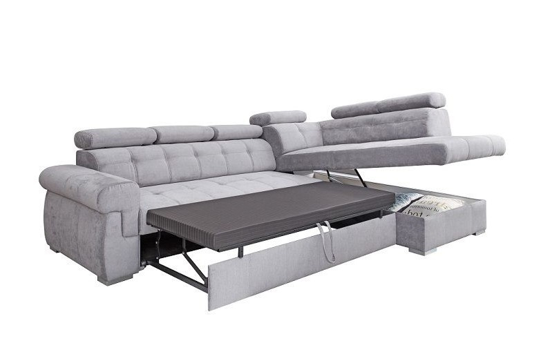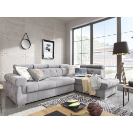 Rohová sedací souprava ANTAL s výškově stavitelnými podhlavníky. Sedačka je rozkládací s úložným prostorem. Po rozkladu vznikne plocha pro příležitostné spaní o rozměrech 120 x 200 cm. Na výběr máte pravou nebo levou variantu rohu. Sedací souprava je očalouněna světle šedou látkou Gusto 82, včetně zad sedačky, můžete ji umístit do prostoru. Pohodlí při sezení podpoří polohovatelné opěrky hlavy. Výška sedačky je podle sklopení opěrek hlavy 85 až 100 cm. Sedák je vyplněný studenou HR pěnou a vlnitou pružinou. Možno zvlášť doobjednat i taburet (š. 90 cm, v. 44 cm, hl. 55 cm) ve stejné potahové látce, cena na dotaz u prodejce.