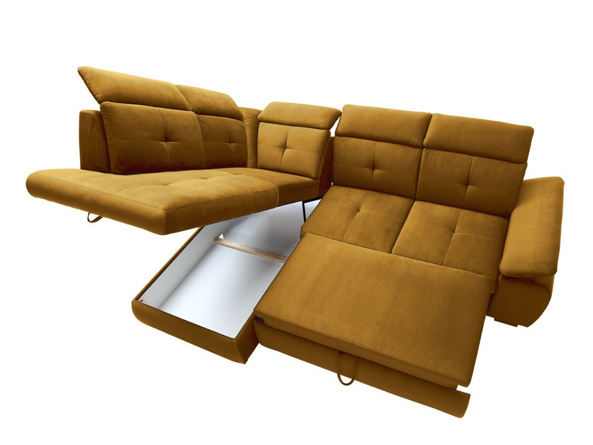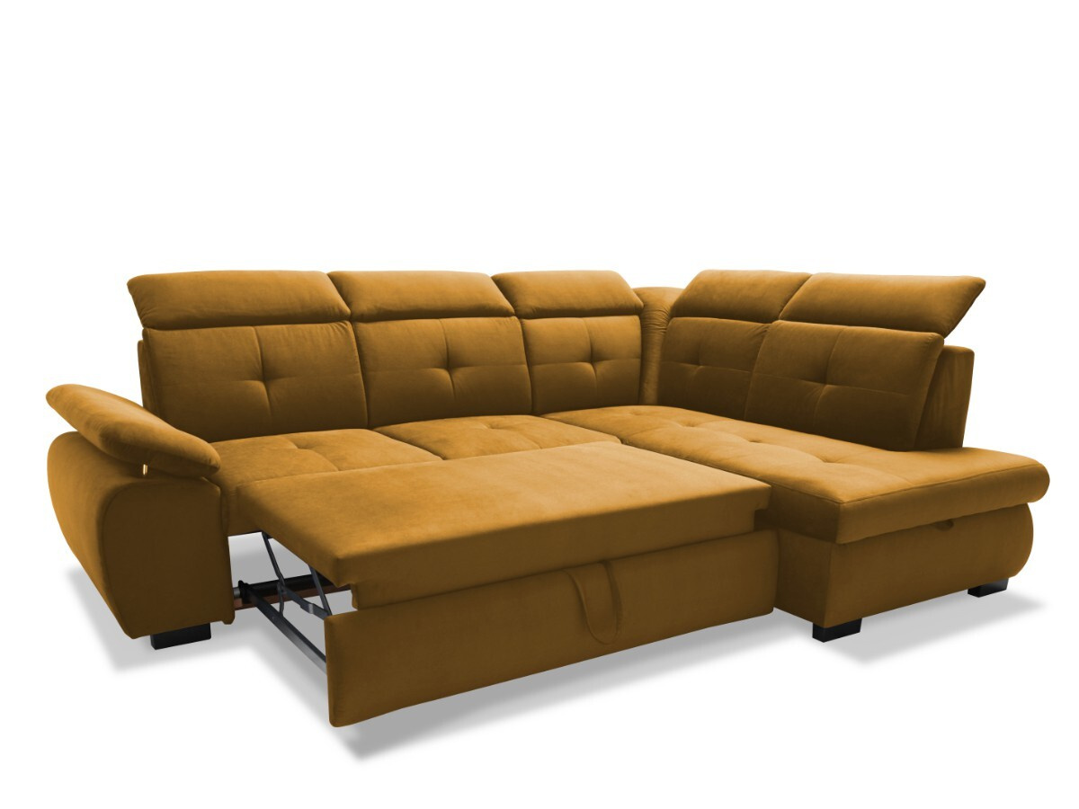 Rohová rozkládací sedací souprava ATARI je skvělá volba do Vašeho obývacího pokoje. ATARI je sedačka, která splní Vaše nejnáročnější představy o pohodlné a moderní sedací soupravě. Rohové provedení je levé nebo pravé. Rohovka je rozkládací s plochou lůžka o rozměrech 126 x 183 cm, zajistí dostatečně pohodlné přespání pro Vaši návštěvu. ATARI je čalouněna kvalitní potahovou látkou Kronos 1 v hořčicové barvě, včetně zad sedací soupravy a rozkladu, který slouží na spaní. Pohodlí při sezení podpoří 5 polohovatelných opěrek hlavy. Sedák je vyplněný odolnou PUR pěnou a vlnitou pružinou.