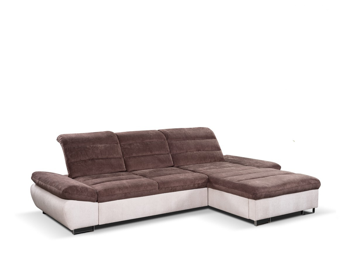 Komfortní rohová sedací souprava ATHENA, velmi pohodlná jak na spaní, tak sezení. Sedačka má nastavitelné područky, opěrky hlavy i zad. Výška sedáku je 43 cm. Stavitelná hloubka sedáku je 75 cm s vysunutou opěrkou zad je hloubka 50 cm. Sedák je vyroben z vlnité pružiny a HR pěny, což zaručuje pohodlné sezení. Rohovka je rozkládací s úložným prostorem. Po rozložení získáte plochu na spaní o rozměrech 140 x 250 cm.